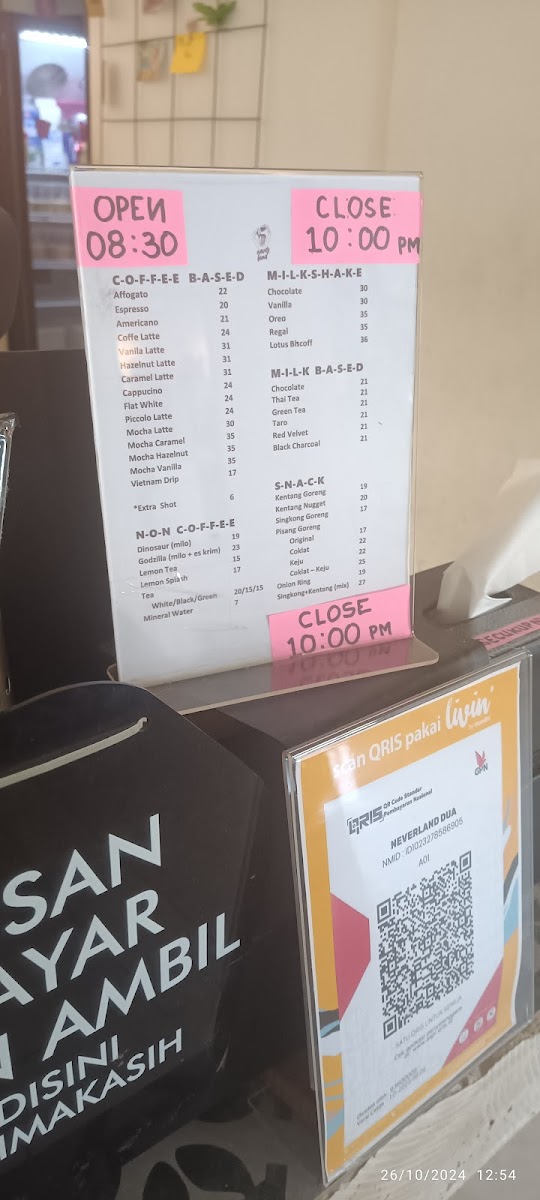 Introducing the menu at Neverland 2, a delightful coffee shop nestled in Menteng, Palangka Raya. This charming spot specializes in Indonesian coffee, offering a true sensory journey for coffee enthusiasts. Patrons rave about the manual brews made with Bali Kintamanis beans, showcasing a clean finish with vibrant notes of orange and dried berries. Although the brewing process may take some time, the rich flavors certainly make the wait worthwhile.